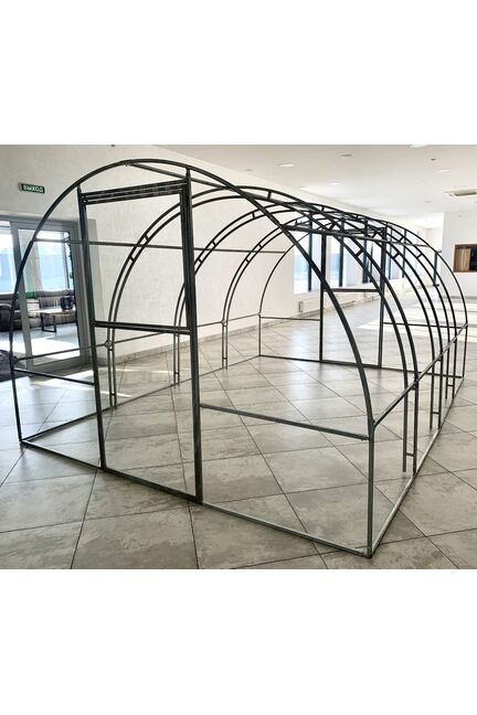 Прочный каркас из оцинкованной усиленной трубы 4×3×2,1 м выдерживает снег и ветер, легко монтируется, подходит для любых укрывных материалов.