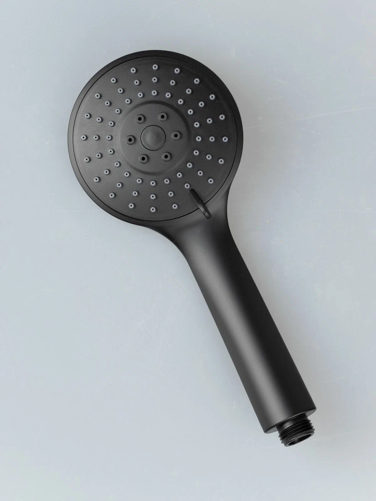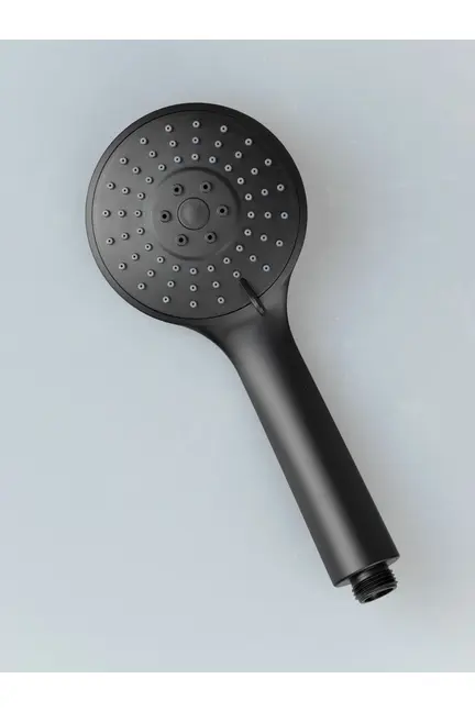 Лейка для душа круглой формы. Имеет 3 режима. Изготовлена из пластика, с матовым черным покрытием. Сопла форсунки сделаны из мягкой резины. Соединительная резьба стандартных размеров (G=1/2). Высокая устойчивость к коррозии Три режима струи, стильный черный дизайн, простая установка, антикоррозийное покрытие, подходит для стандартных шлангов, легкая очистка.