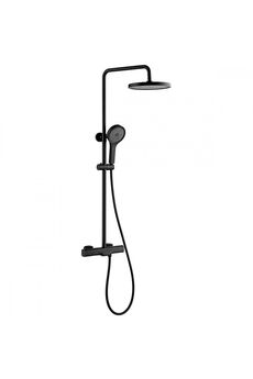 Душевая система в черном цвете с верхним и ручным душем, смесителем и антикоррозионным покрытием.