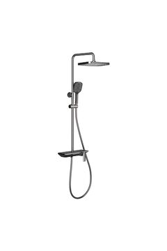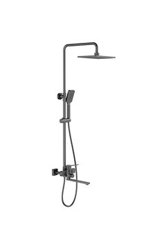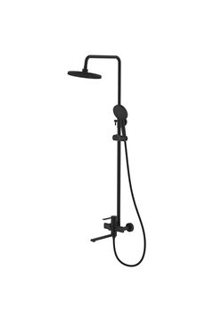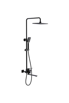 Душевая система в черном цвете с верхним и ручным душем, смесителем и антикоррозионным покрытием.