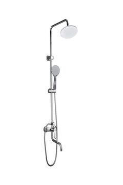 Хромированная душевая система с латунным смесителем, регулируемой высотой и двумя душами — максимум комфорта для вашей ванной комнаты.