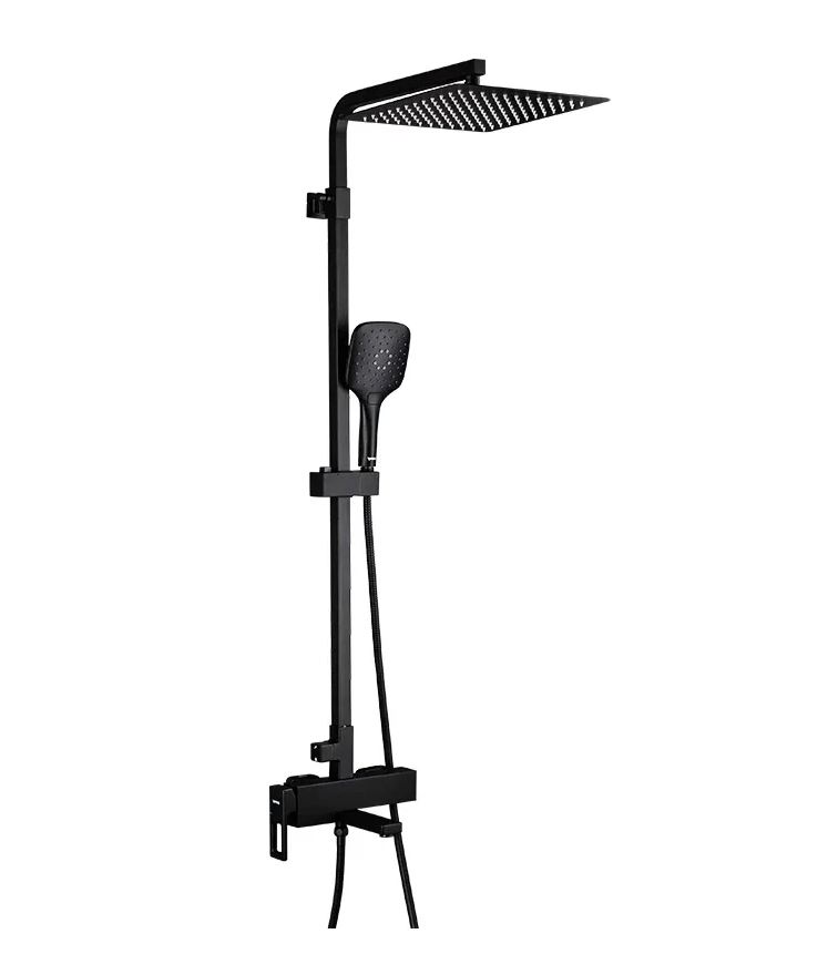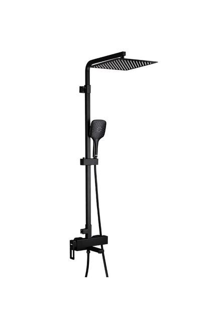Эргономичная черная душевая система со смесителем, двумя режимами подачи воды и легким подключением для стильной и комфортной ванной.