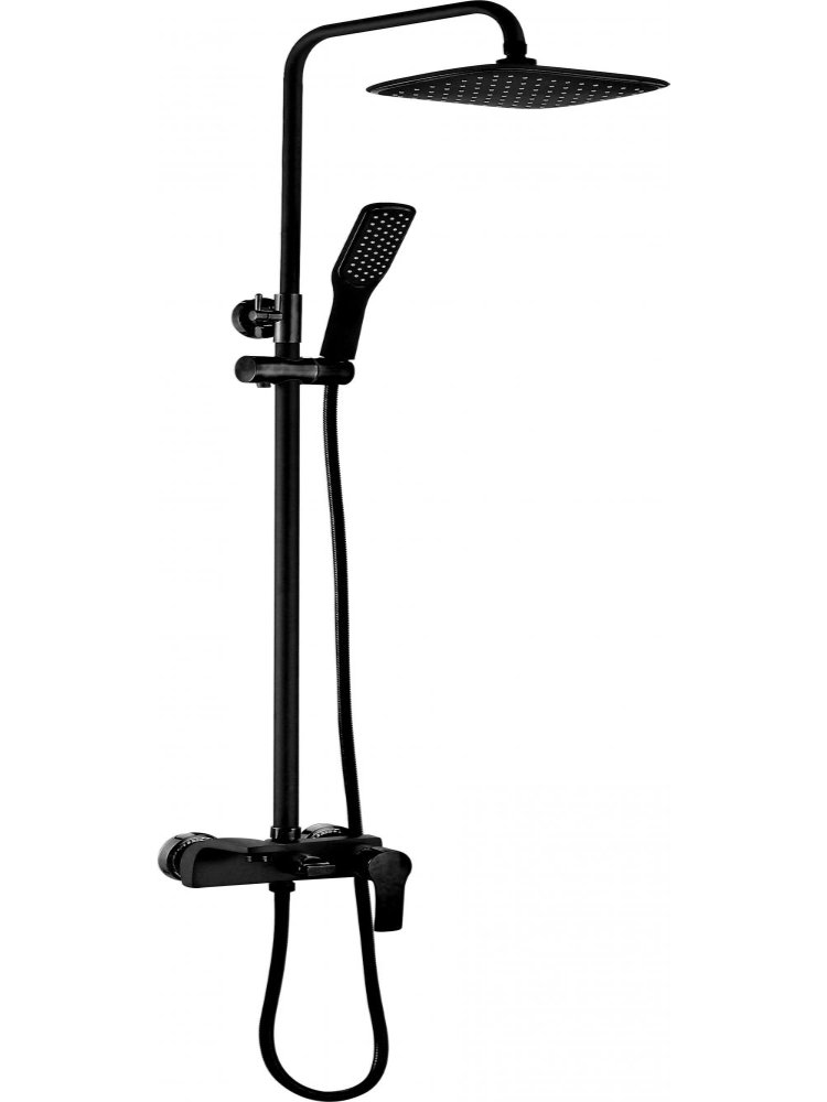 Корпус: высококачественная латунь; Покрытие: акрил; Цвет: чёрный; Аэратор: G-eco; Керамический картридж: G-ceramic; Технология: TermoSAFE; Гарантия: 7 лет. Стильная душевая система с черным покрытием, верхним и ручным душем, однорычажным смесителем и простой установкой для комфортного ежедневного использования.