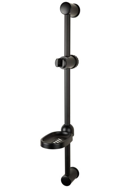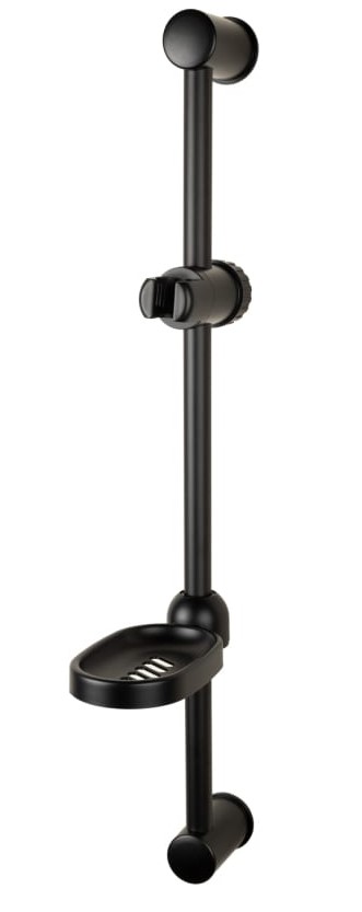 Душевая стойка 650 мм с черным покрытием, регулируемым держателем лейки и практичной мыльницей.