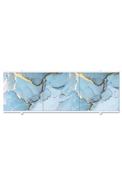 Стильный экран для ванн 1,48 м с мраморной фотопечатью, влагостойкий пластик и раздвижная система для лёгкого доступа к коммуникациям.