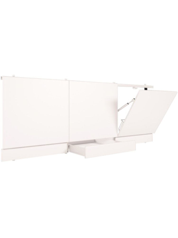 Благодаря эргономичному дизайну и наличию удобного выдвижного ящика, этот экран идеально подойдёт для оформления и защиты пространства под ванной в домашних ванных комнатах и санузлах. Современное решение для скрытия коммуникаций и хранения бытовых мелочей.