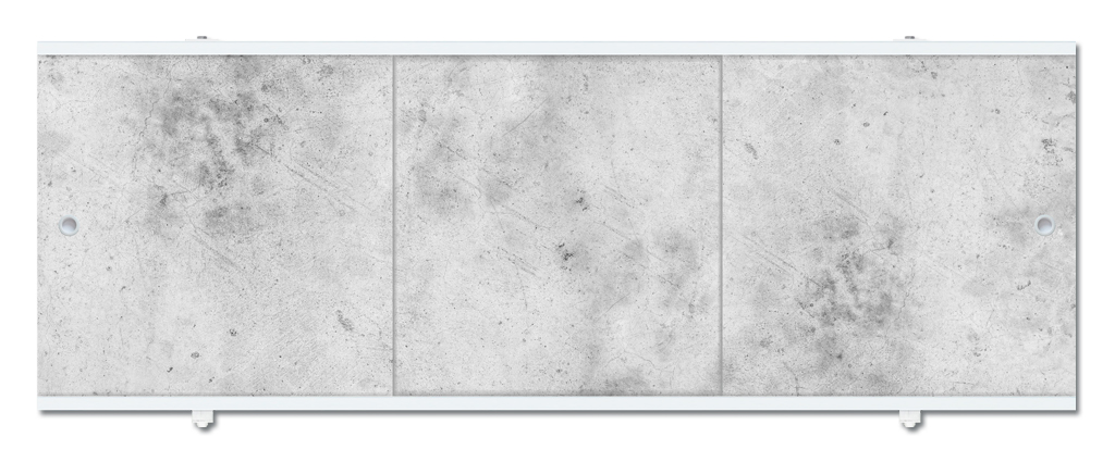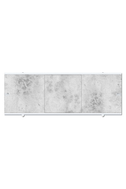 Экран серого бетонного цвета длиной 1,68 м: влагостойкий пластик, раздвижные панели, быстрый монтаж, современный дизайн для скрытия коммуникаций.