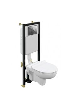 В комплект входит: Инсталляция, унитаз рама, клавиша смыва хром, сиденье. Унитаз размеры 37*35,5*53 см -Безободковая конструкция Clean-On облегчает уход за унитазом благодаря отсутствию труднодоступных мест. -Легкосъемное сиденье из дюропласта, ультратонкое. -Механизм плавного опускания Soft Close. -Двухуровневая арматура с механизмом смыва SIAMP 3/6 л. -Тип инсталляции: цельная. -Расстояние между болтами для монтажа унитаза: 18 или 23 см. -Клавиша смыва - двойной смыв Готовое решение: инсталляция, унитаз, стальная рама и хром клавиша – для стильного санузла и максимальной экономии пространства.