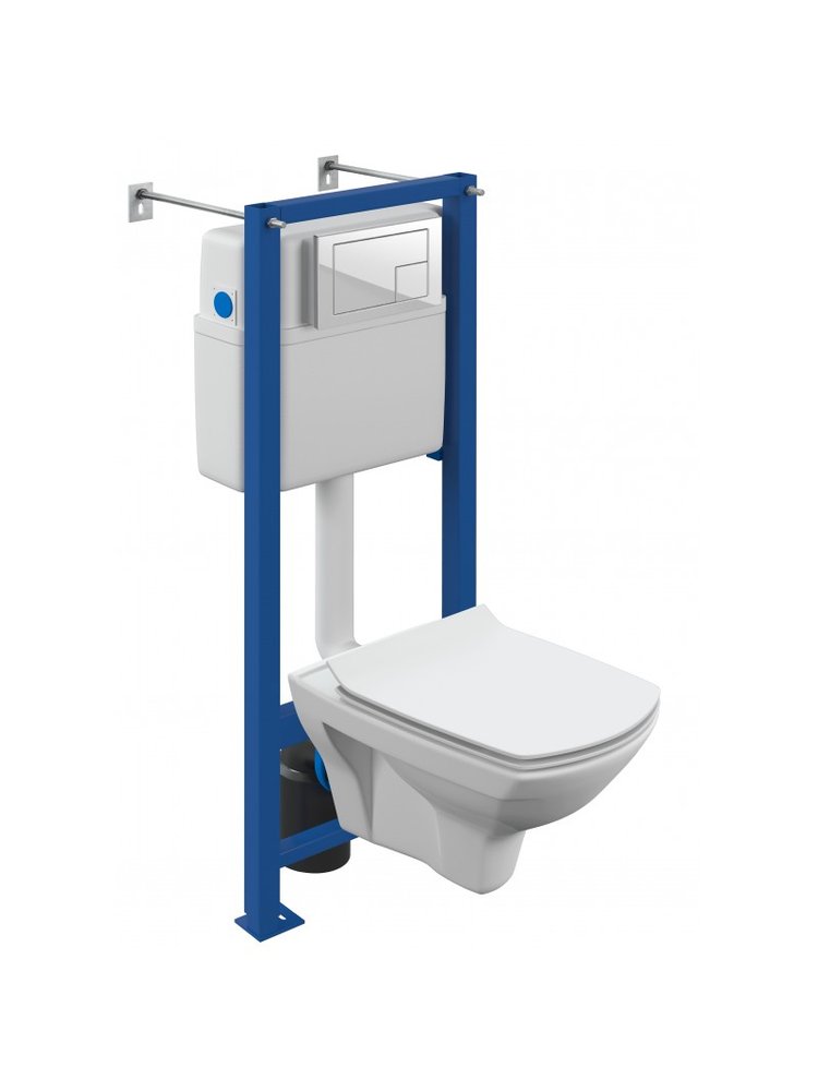 Повысьте комфорт и эстетику вашей ванной комнаты с инновационной инсталляцией для унитаза, предназначенной для скрытого монтажа — идеальное решение для современных интерьеров санузлов в квартирах, офисах и коммерческих помещениях. Комплект включает крепкую сверхнадежную стальную раму, керамический унитаз с антивсплеском, современную белую клавишу смыва, бачок с двойным режимом экономии воды и все необходимые элементы для установки.