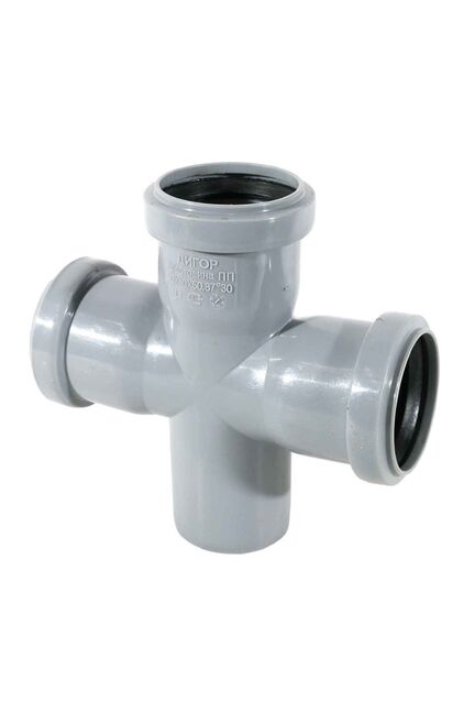 Канализационная крестовина 50/50 мм, угол 87°, для внутренней разводки, обеспечивает герметичность и стойкость к агрессивным средам.