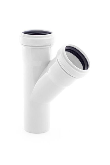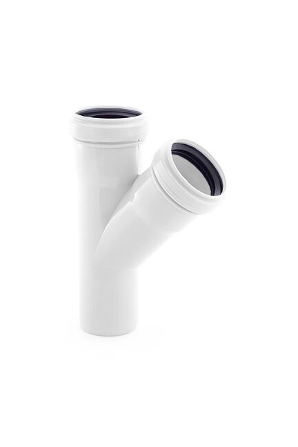 Малошумный тройник Ø50 мм, угол 45°, прочный полипропилен, снижает уровень шума канализации. Легко монтируется, устойчив к износу и коррозии.