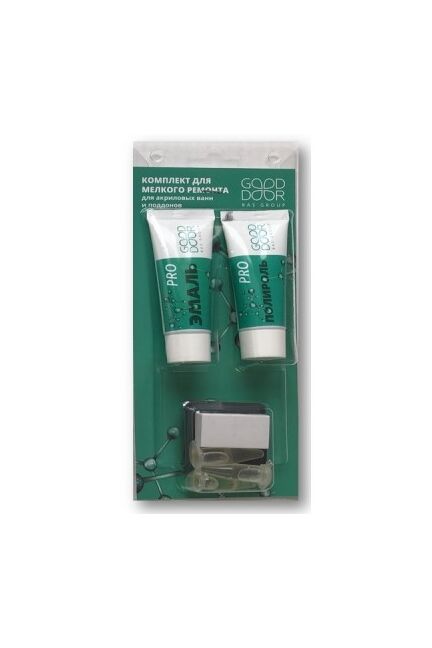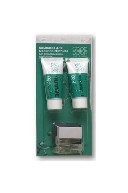 В состав комплекта входят:-эмаль -20 гр-отвердитель - 3*1,8 гр-паста полировальная высоко абразивная -20 гр-брусок резиновый -1 шт;-салфетка из нетканого материала 20 см х22 см -1 шт;-шкурка шлифовальная бумажная водостойкая 5,5 смх7 см - 4 шт 600,800,1000,1200 (по одной каждого вида)... Всё для быстрого устранения сколов и трещин акриловых ванн. Просто нанесите и восстановите поверхность за 1–2 часа – набор готов к применению.