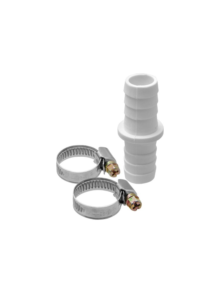 Надёжное и простое решение для герметичного соединения сливных шлангов диаметром 19 и 22 мм — комплект с соединителем, двумя прочными металлическими хомутами и подвесом для удобной установки. Применяется для организации и ремонта систем водоотведения в бытовой и профессиональной сантехнике, подключении стиральных и посудомоечных машин.