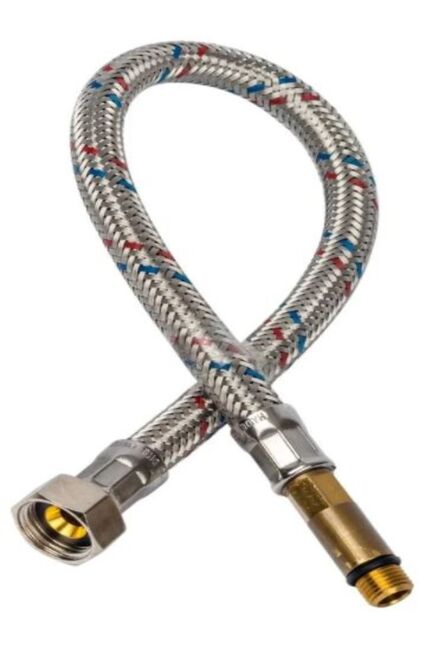 Гибкая подводка 200 см для подключения сантехники, с нержавеющей оплеткой, выдерживает до 10 атм, устойчива к износу и коррозии.
