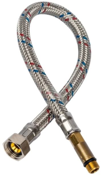 Гибкая подводка 40 см с прочной стальной оплеткой, устойчивостью к давлению и коррозии — для надежного подключения сантехники и бытовой техники.