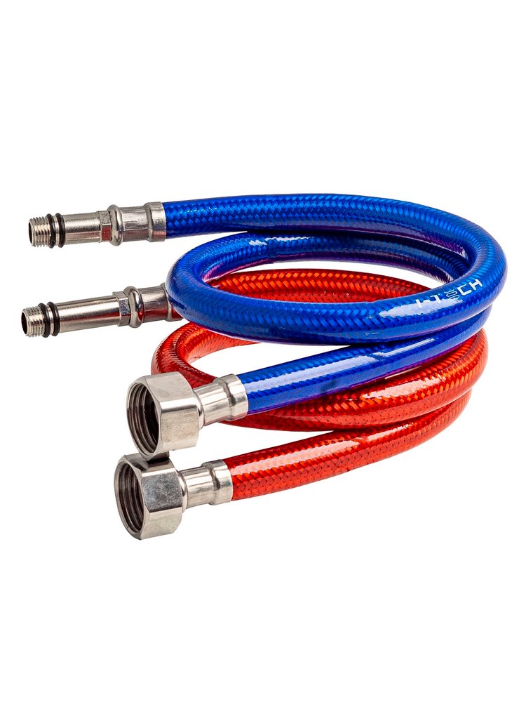 • Комплект из 2-х шлангов — для горячей и холодной воды;