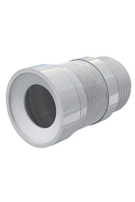 Гибкая гофра с диапазоном длины 20–36 см, диаметр 110/134 мм, для простого герметичного подключения унитаза к канализации в ограниченном пространстве.