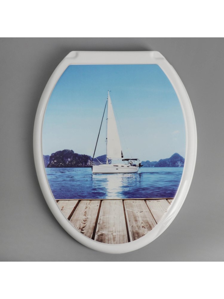 Освежите интерьер ванной комнаты функциональным и стильным аксессуаром. Декоративное сиденье для унитаза с оригинальным рисунком «Яхта» идеально впишется в современный или морской дизайн. Прочное крепление гарантирует устойчивость, а универсальная форма 44,5×37,5 см позволяет установить сиденье на большинство стандартных унитазов.