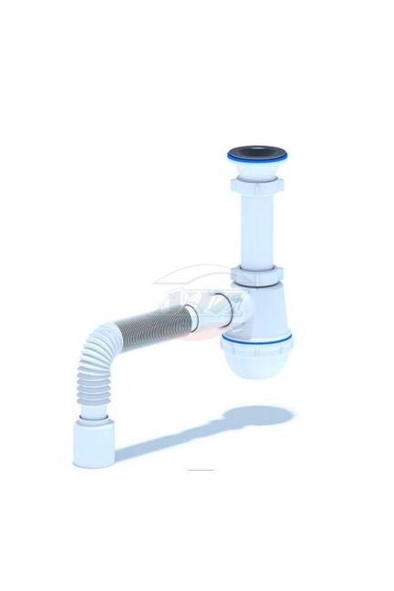 Гибкий сифон с нержавеющим выпуском для кухонных моек, простой монтаж, устойчивость к коррозии и засорам, легкая очистка и долговечность.