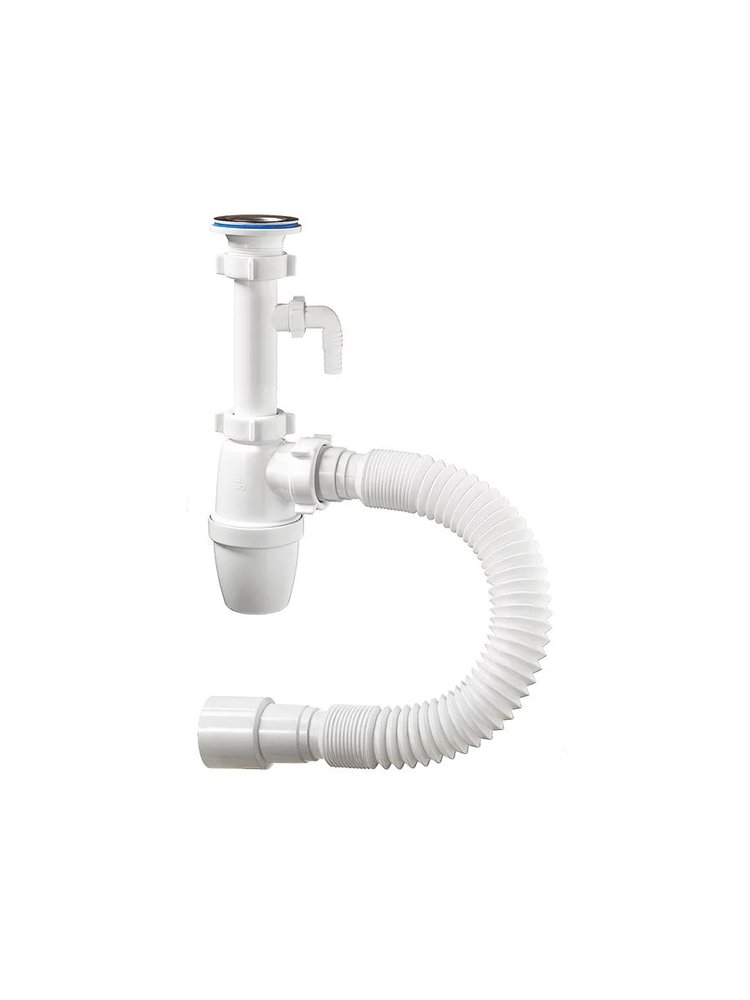 Надёжное и практичное решение для подключения кухонной мойки и стиральной машины в одном комплекте! Сифон с отводом под стиральную машину и гибкой трубой универсален и подходит для большинства моек и бытовых приборов. Простая сборка и герметичность конструкции исключают протечки и неприятные запахи.