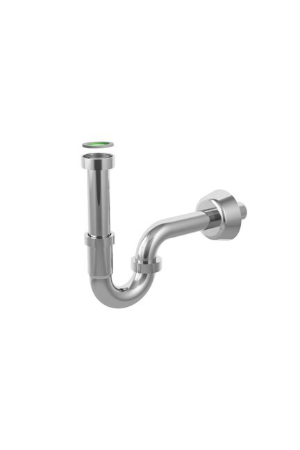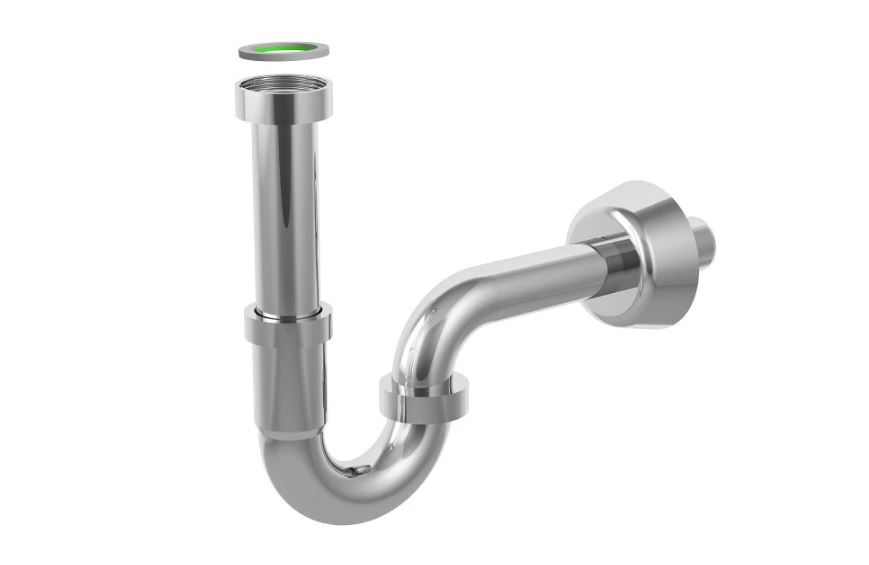 Хромированный полипропилен, диаметр выпуска 1 1/4”, трубка 32 мм, компактная установка, устойчив к коррозии и перепадам температур.