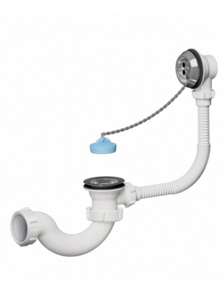 Идеальное решение для вашей ванной: современный сифон с переливом и нержавеющим выпуском гарантирует надежный слив и предотвращает затопления. Подходит для установки в стандартные ванны с отверстием 1 1/2". Прост в монтаже и обслуживании благодаря продуманной конструкции.