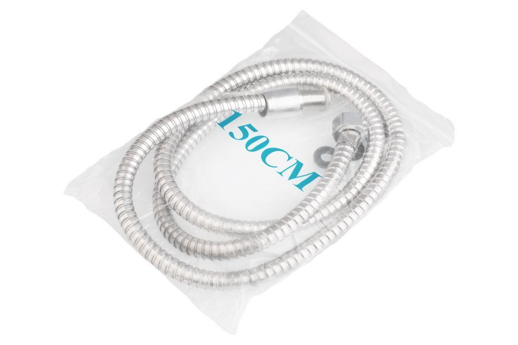 резиновый шланг в стальной оплётке с резиновой прокладкой на шланге 150 1/2"-1/2" Страна производителя:Китай Гибкий шланг 150 см с анти витковой системой и хромированным покрытием подходит для большинства леек, надежен и прост в установке.