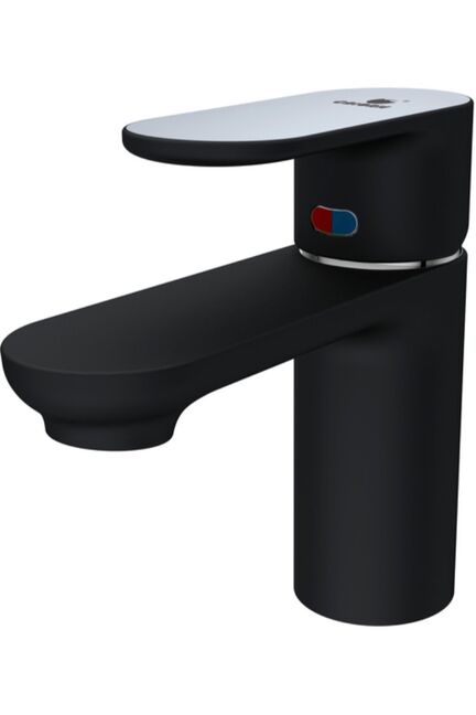Надежный смеситель с керамическим картриджем, черно-хромовым покрытием и удобным рычагом — лаконичность и долговечность для вашей ванной.