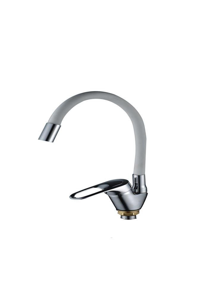 Выбирайте современное решение для вашей кухни — однорычажный смеситель с гибким белым изливом 16 см, идеально подходящий для ежедневного использования на кухне дома или в общественных пространствах. Гибкий шланг облегчает мытьё посуды любых размеров, наполнение ёмкостей и поддержание чистоты на рабочей поверхности, делая процесс максимально комфортным и быстрым.