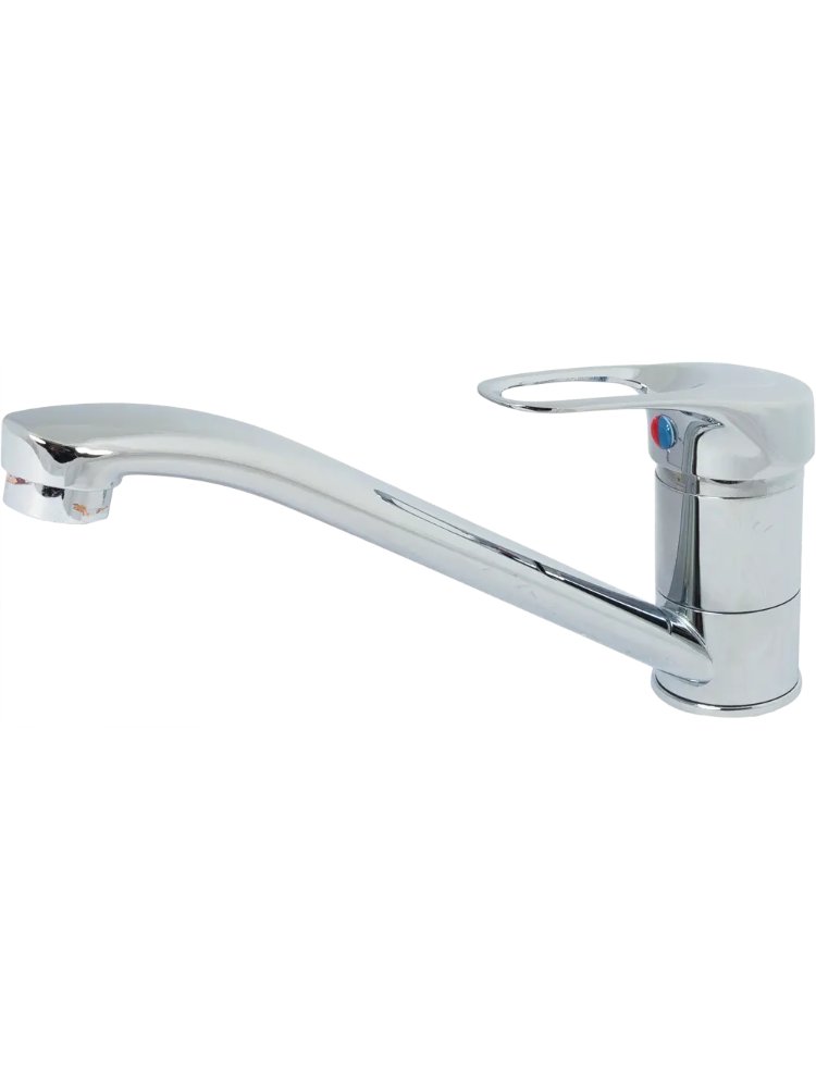 Страна производитель Китай Продается без подводки Однорычажный смеситель с длинным изливом 22 см для удобного мытья посуды, прочен, прост в установке, подходит для кухонных моек любого размера.