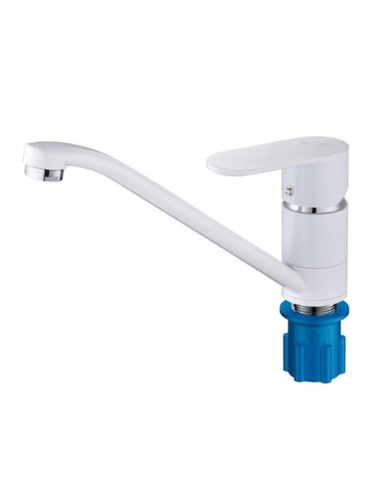 Обеспечьте комфорт на вашей кухне — однорычажный смеситель с белой эмалью легко впишется в современный интерьер и предназначен для установки на кухонную мойку. Неподвержен коррозии и легко очищается от загрязнений.