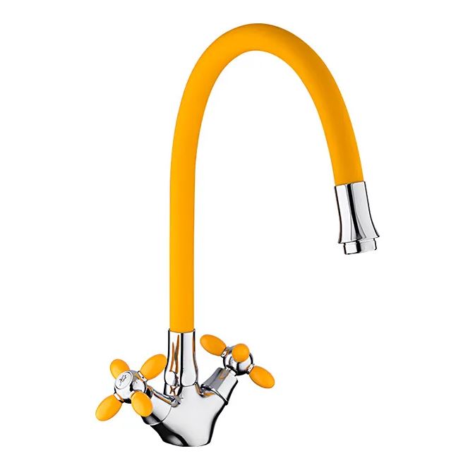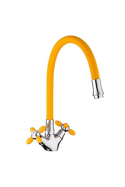 Смеситель д/кухни, FRUD двуручн., желтый гибкий излив R44127-9