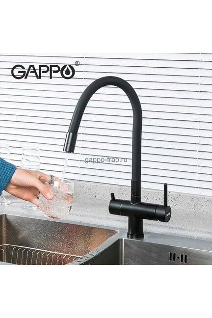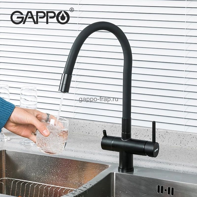 Смеситель д/кухни, GAPPO однорыч., канал д/фильтр.воды, черный G4398-16