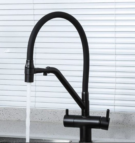 Смеситель д/кухни, GAPPO однорыч., канал д/фильтр.воды, черный гибкий излив G4398-86