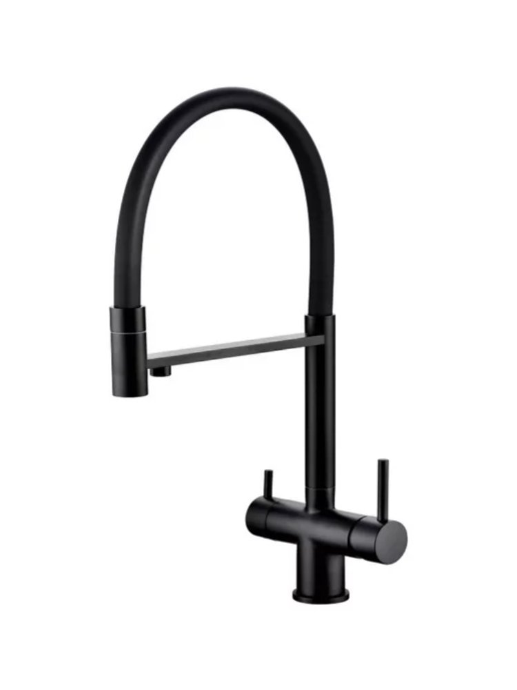 Стильный и функциональный смеситель с гибким изливом — идеальное решение для современной кухни. Оснащён дополнительным каналом для фильтрованной воды, обеспечивая чистоту и удобство использования в бытовых и профессиональных условиях.