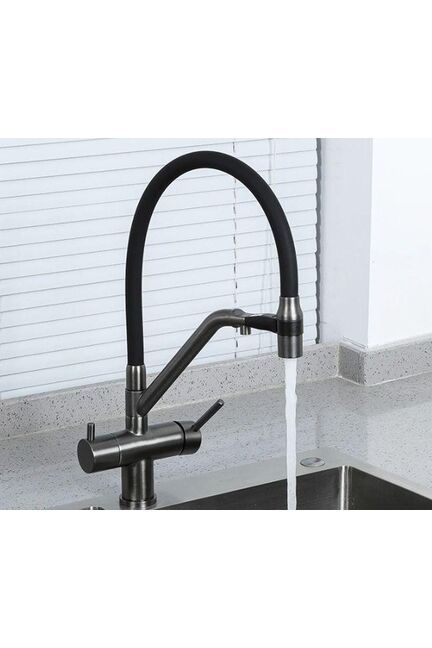 Смеситель д/кухни, GAPPO однорыч., канал д/фильтр.воды, оружейная сталь/черный гибкий излив G4398-89