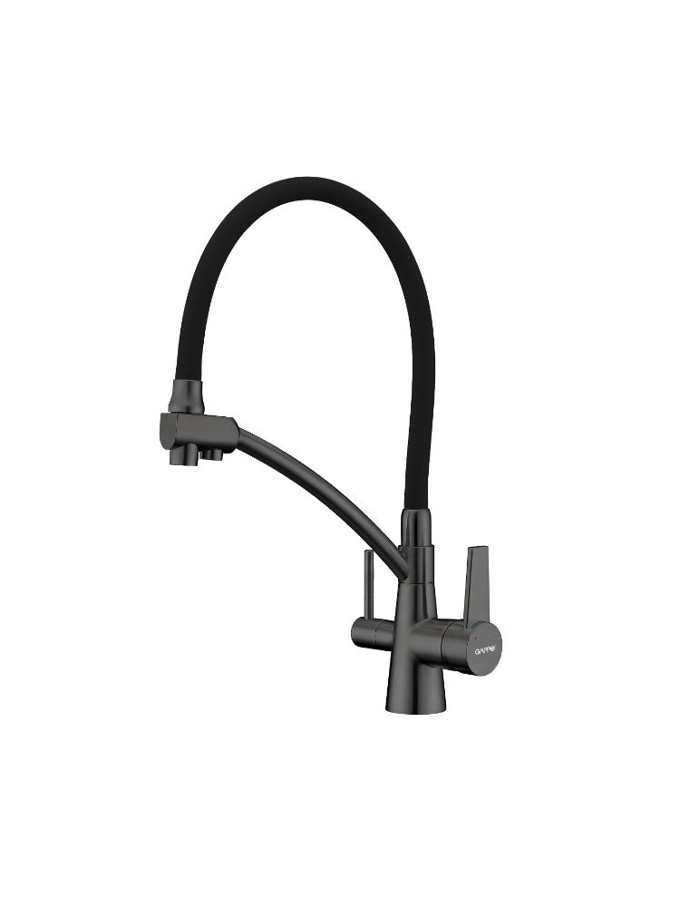 Смеситель д/кухни, GAPPO однорыч., канал д/фильтр.воды, оружейная сталь гибкий излив G4398-19