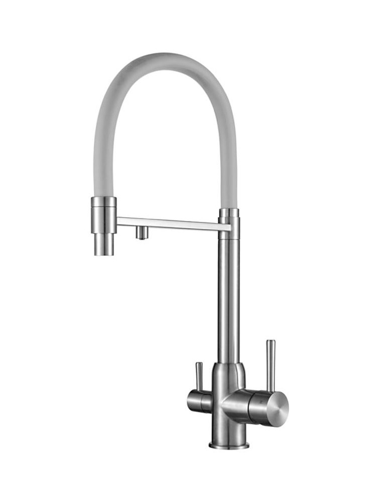 Идеальное решение для современной кухни — многофункциональный смеситель с гибким изливом и отдельным каналом для фильтрованной воды. Благодаря инновационному дизайну сатиновой поверхности, прибор гармонично впишется в любой интерьер и обеспечит максимальный комфорт при ежедневном использовании.