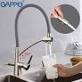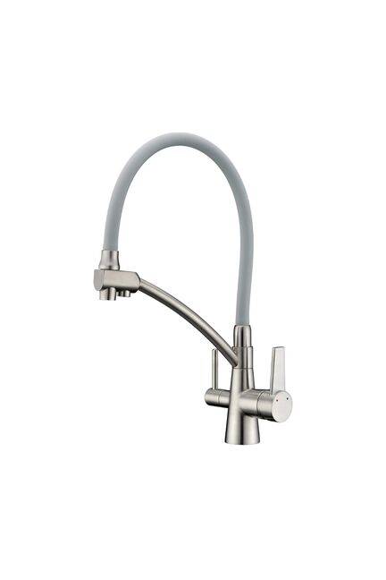 Смеситель д/кухни, GAPPO однорыч., канал д/фильтр.воды, серый гибкий излив, сатин G4398