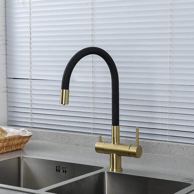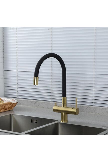 Смеситель д/кухни, GAPPO однорыч., канал д/фильтр.воды, золото, черный гибкий излив G4398-33