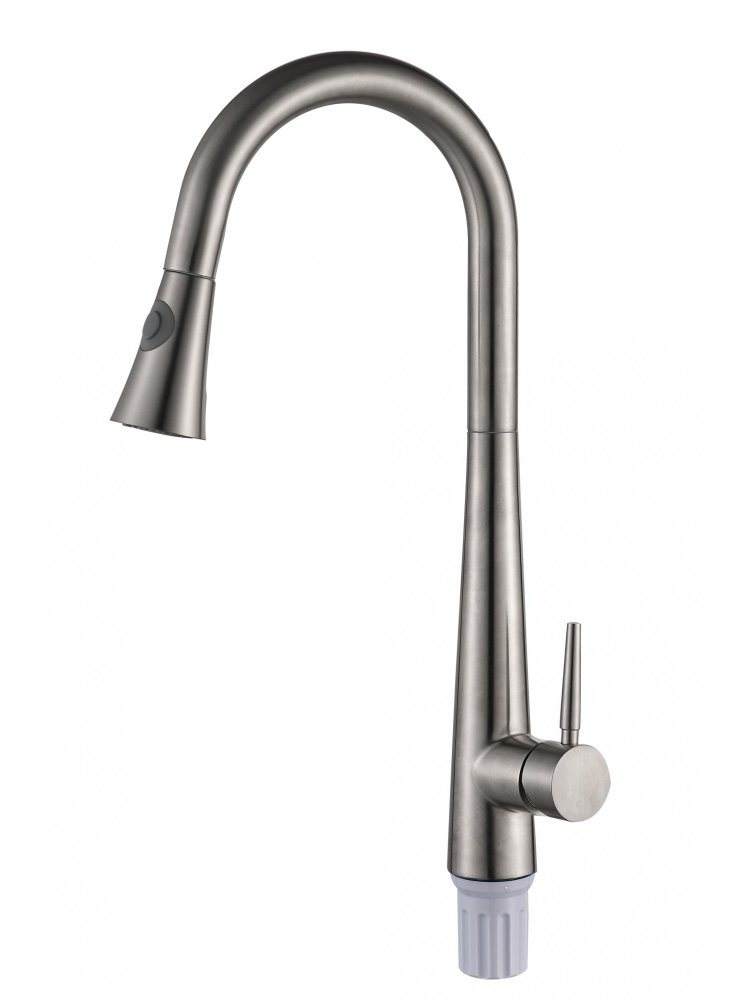 Надёжное решение для вашей кухни — современный однорычажный смеситель с выдвижной лейкой идеально подходит для эффективного мытья посуды и заполнения крупной посуды. Лейка облегчает доступ к труднодоступным зонам, делая ежедневную уборку максимально комфортной.