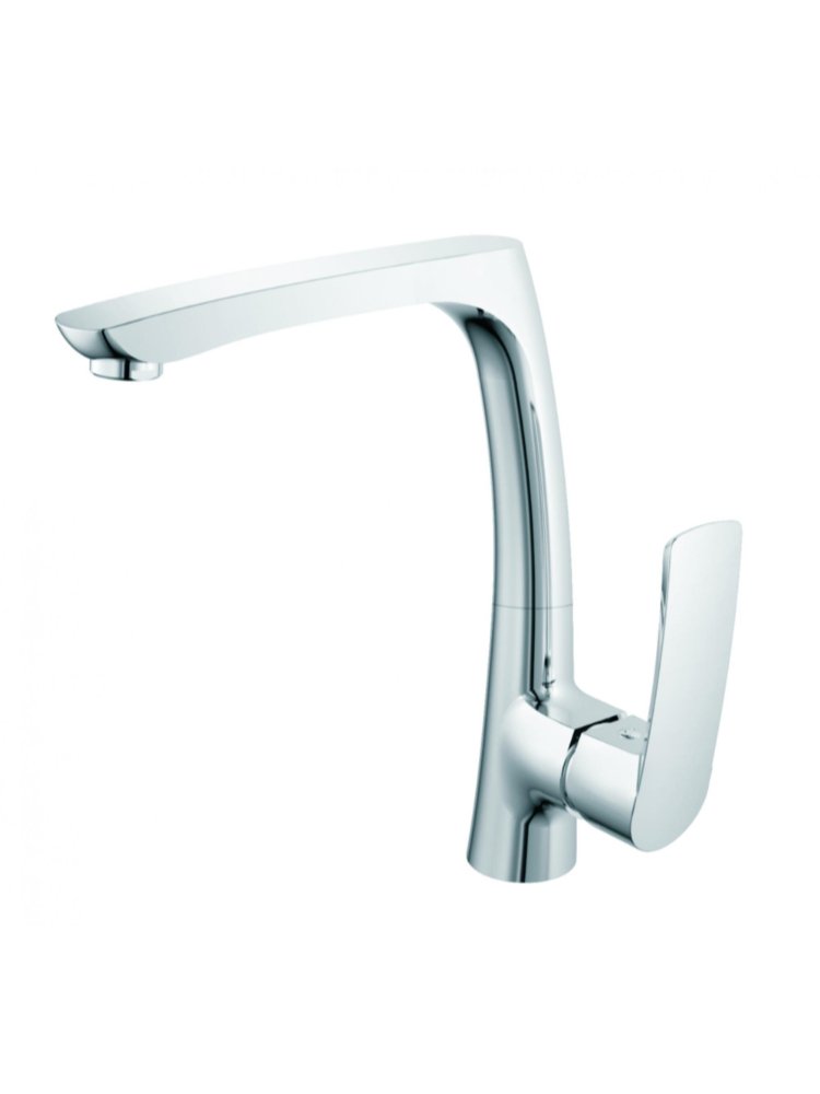 Корпус: высококачественная латунь; Покрытие: хром; Цвет: хром; Аэратор: G-eco; Керамический картридж: G-ceramic; Технология: TermoSAFE; Гарантия: 7 лет. Однорычажный смеситель с латунным корпусом, керамическим картриджем и высоким поворотным изливом — простая установка и надежность для вашей кухни.