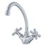 Двуручный смеситель для кухни с поворотным изливом, устойчивая конструкция, удобная регулировка, долговечность и стильный дизайн.