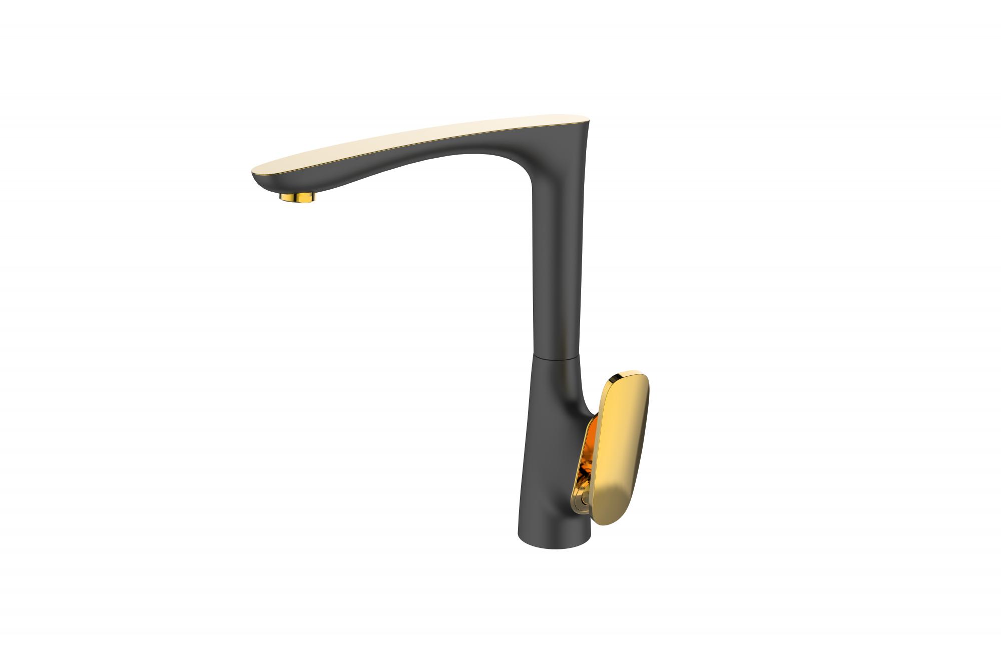 Корпус: высококачественная латунь; Покрытие: акрил; Цвет: чёрный с золотом; Аэратор: G-eco; Керамический картридж: G-ceramic; Технология: TermoSAFE; Гарантия: 7 лет. Современный однорычажный смеситель черный/золото: керамический картридж 40 мм, поворотный излив, стиль и надежность для вашей кухни.