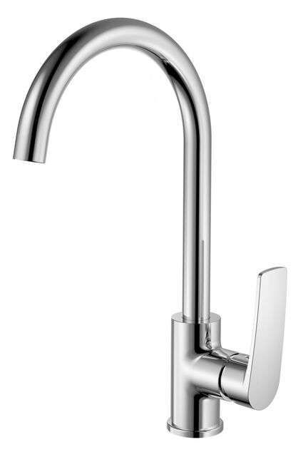 Корпус: высококачественная латунь; Покрытие: хром; Цвет: хром; Аэратор: G-eco; Керамический картридж: G-ceramic; Технология: TermoSAFE; Гарантия: 7 лет. Удобный однорычажный смеситель с керамическим картриджем 40 мм и высоким изливом — надежное решение для современной кухни.
