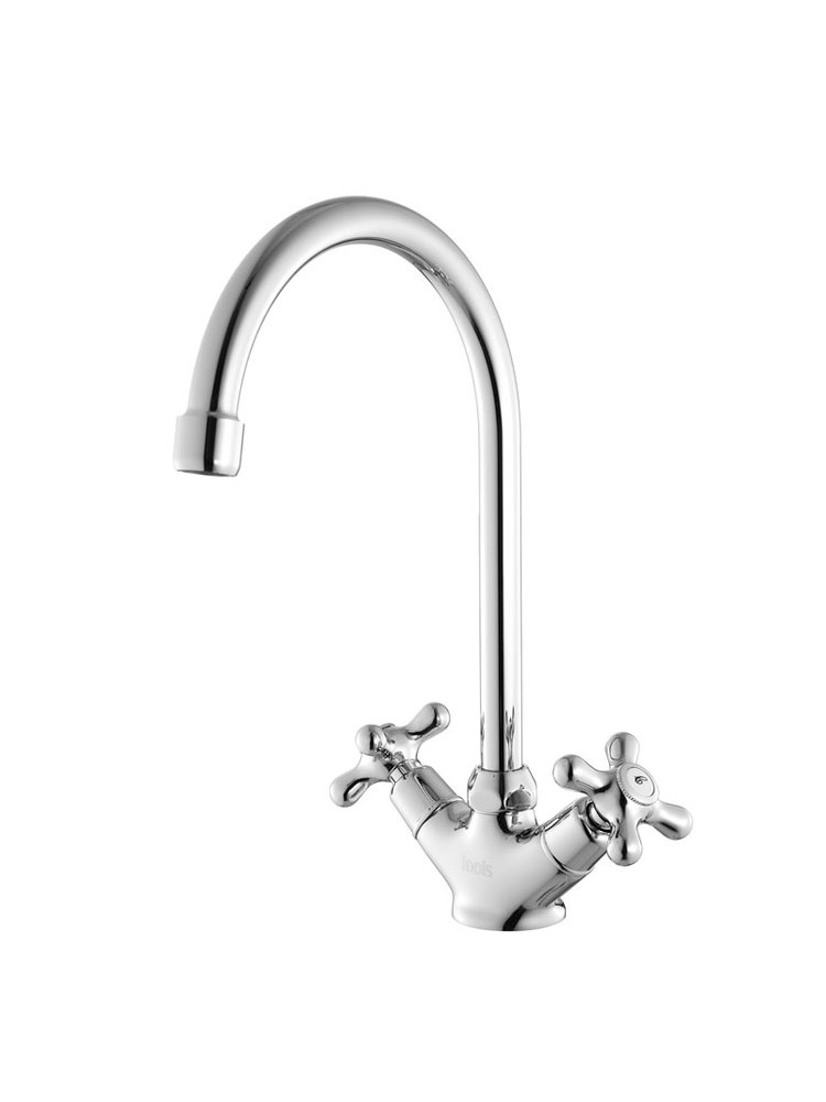 Компактный кухонный смеситель с двумя раздельными рукоятками обеспечивает удобную настройку температуры и напора воды. Изливает струю на 17,4 см, что оптимально для стандартных и малых моек. Корпус из прочной латунной основы покрыт белой эмалью, устойчивой к царапинам и коррозии. Классический дизайн органично впишется в большинство современных кухонь, а керамические кран-буксы гарантируют надежную работу в течение длительного времени.