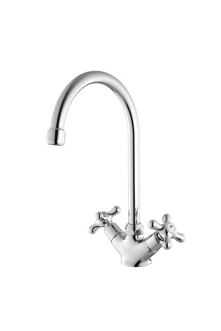 Компактный кухонный смеситель с двумя раздельными рукоятками обеспечивает удобную настройку температуры и напора воды. Изливает струю на 17,4 см, что оптимально для стандартных и малых моек. Корпус из прочной латунной основы покрыт белой эмалью, устойчивой к царапинам и коррозии. Классический дизайн органично впишется в большинство современных кухонь, а керамические кран-буксы гарантируют надежную работу в течение длительного времени.