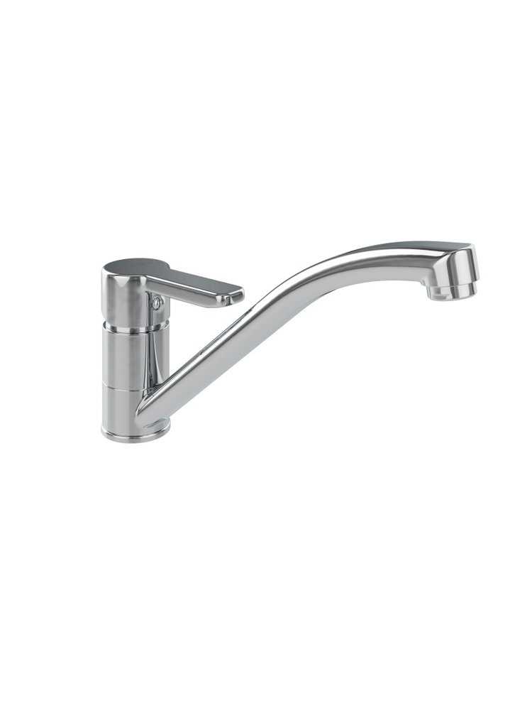 Смеситель для кухни оснащён поворотным изливом длиной 22 см, выполнен из высококачественной латуни с хромированным покрытием, что обеспечивает долговечность и износостойкость. Однорычажная конструкция позволяет легко регулировать напор и температуру воды, а керамический картридж гарантирует плавную работу механизма. Аэратор обеспечивает равномерный поток воды и экономию расхода. Универсальное горизонтальное крепление подходит для большинства кухонных моек, облегчая монтаж.