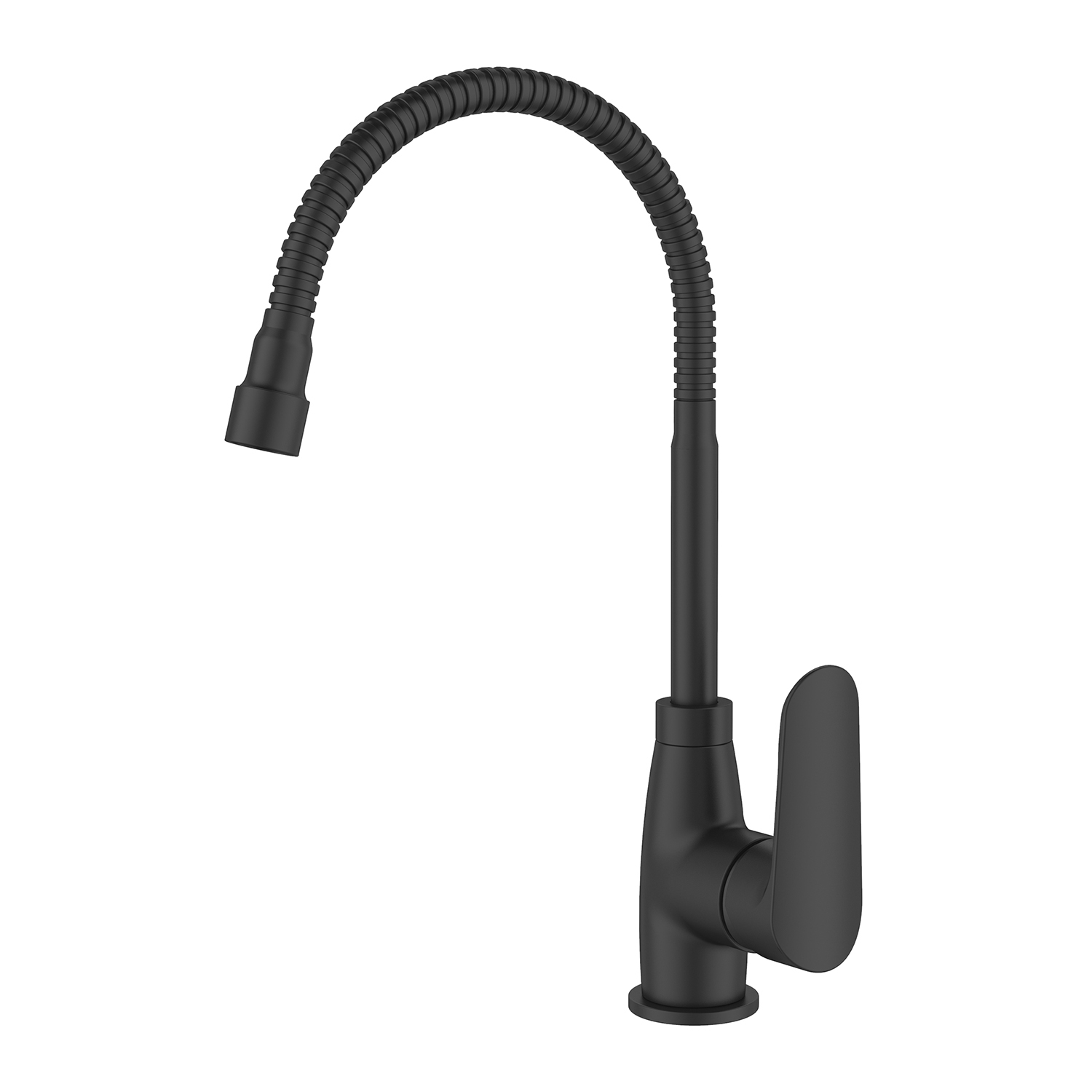 Гибкий черный излив, латунный корпус, керамический картридж, простая установка и эргономичное управление для комфортной работы на кухне.