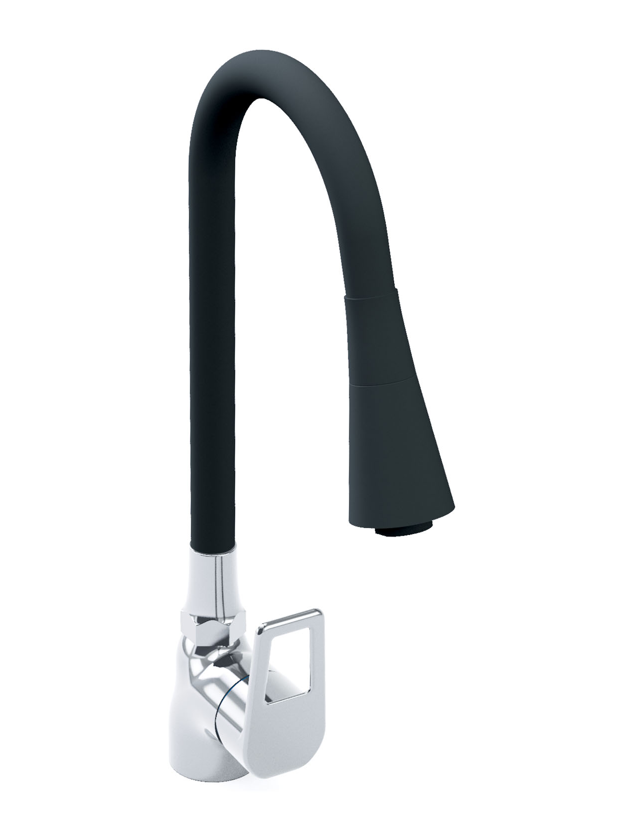Гарантия: 5 лет Картридж с керамическими дисками. Материал: латунь Гибкий черный силиконовый излив, прочный корпус, плавное управление одной рукой, надежный керамический картридж и современный дизайн для кухни.